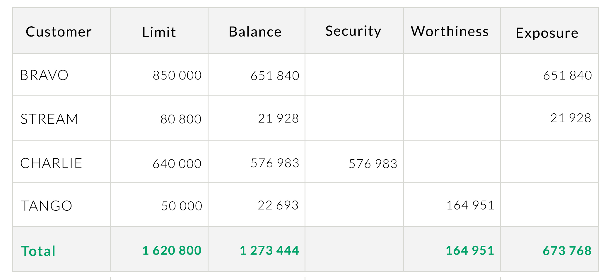 Main PORTFOLIO's advantage - holistic, true and fair picture of company's receivables. It gives an idea of sales potential, efficiency of security and payment performance. Even complicated tasks like cumulative risk and concentrations become easy. Business owners, managers, finance and sales use it for their decision-making.
